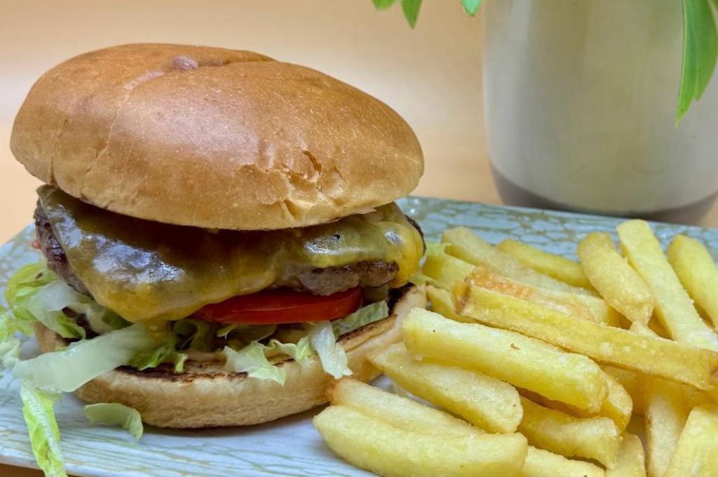 Pan brioche, doble carne Black Angus prensada para conseguir la costra tan especial de las smash, con doble de queso cheddar, pepinillo, y nuestra deliciosa salsa burger.