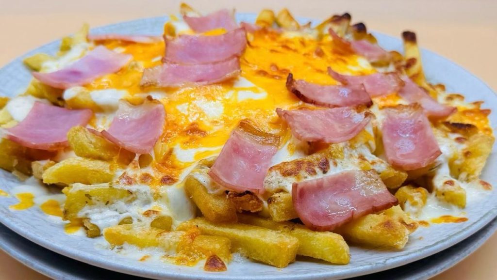 Cinta de lomo, bacon, tomate fresco, queso gouda y salsa ali oli. La fusion de Sevilla y Malaga!! Acompañado de patatas fritas..