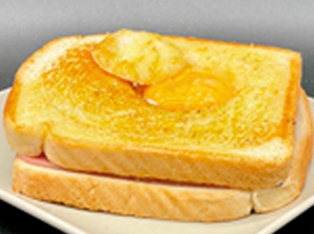 Mayonesa, lechuga, tomate, cebolla, jamon york, queso y bacon.Acompañado de patatas fritas.